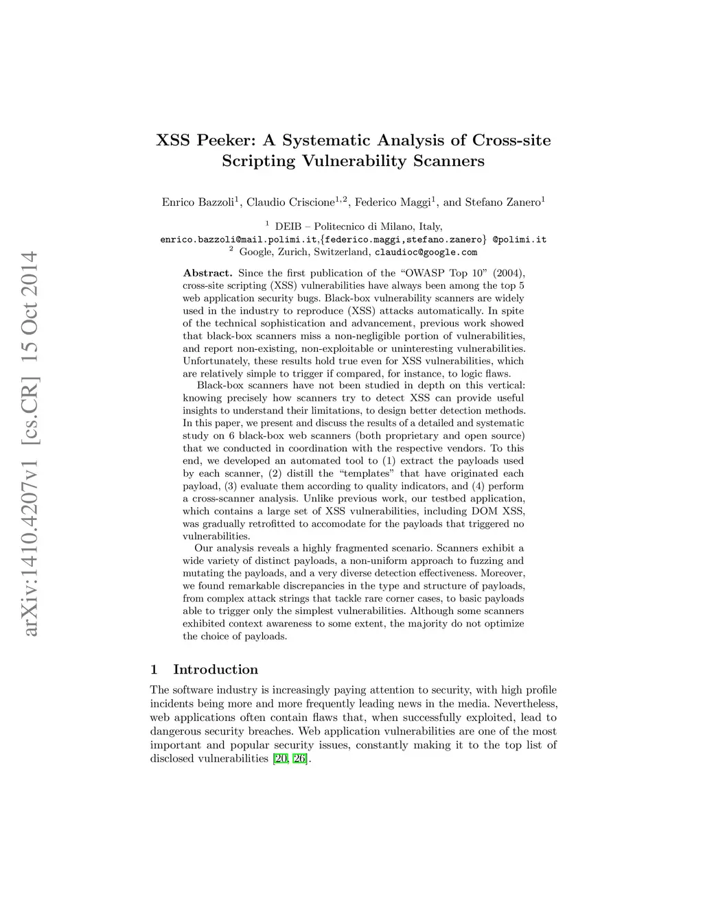 XSS Peeker: A Systematic Analysis of Cross-site Scripting Vulnerability