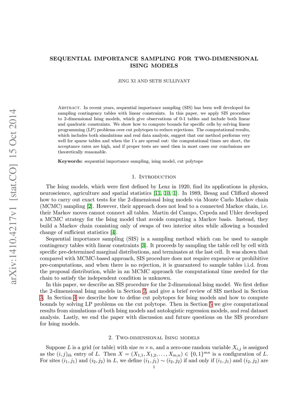 Sequential Importance Sampling for Two-dimensional Ising Models