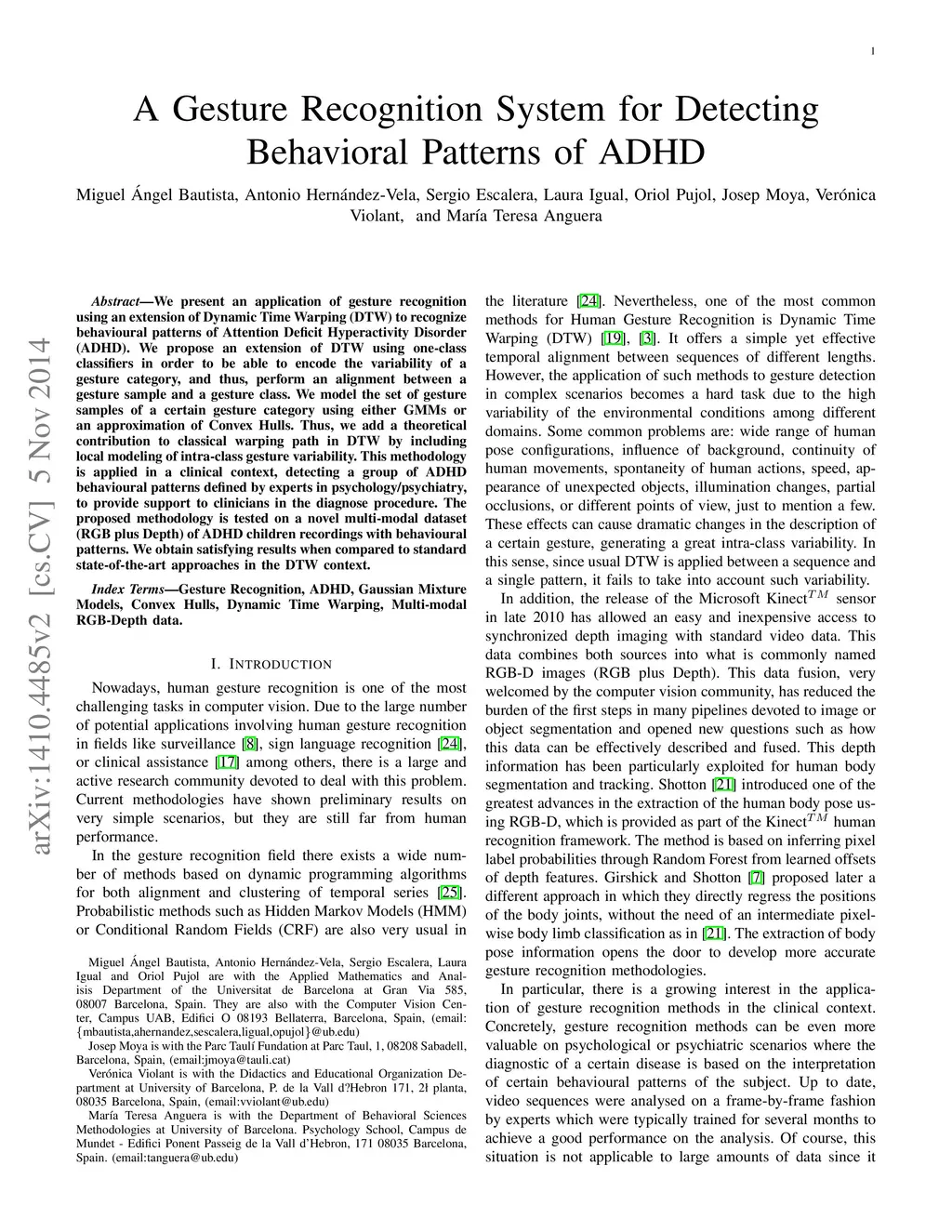A Gesture Recognition System for Detecting Behavioral Patterns of ADHD