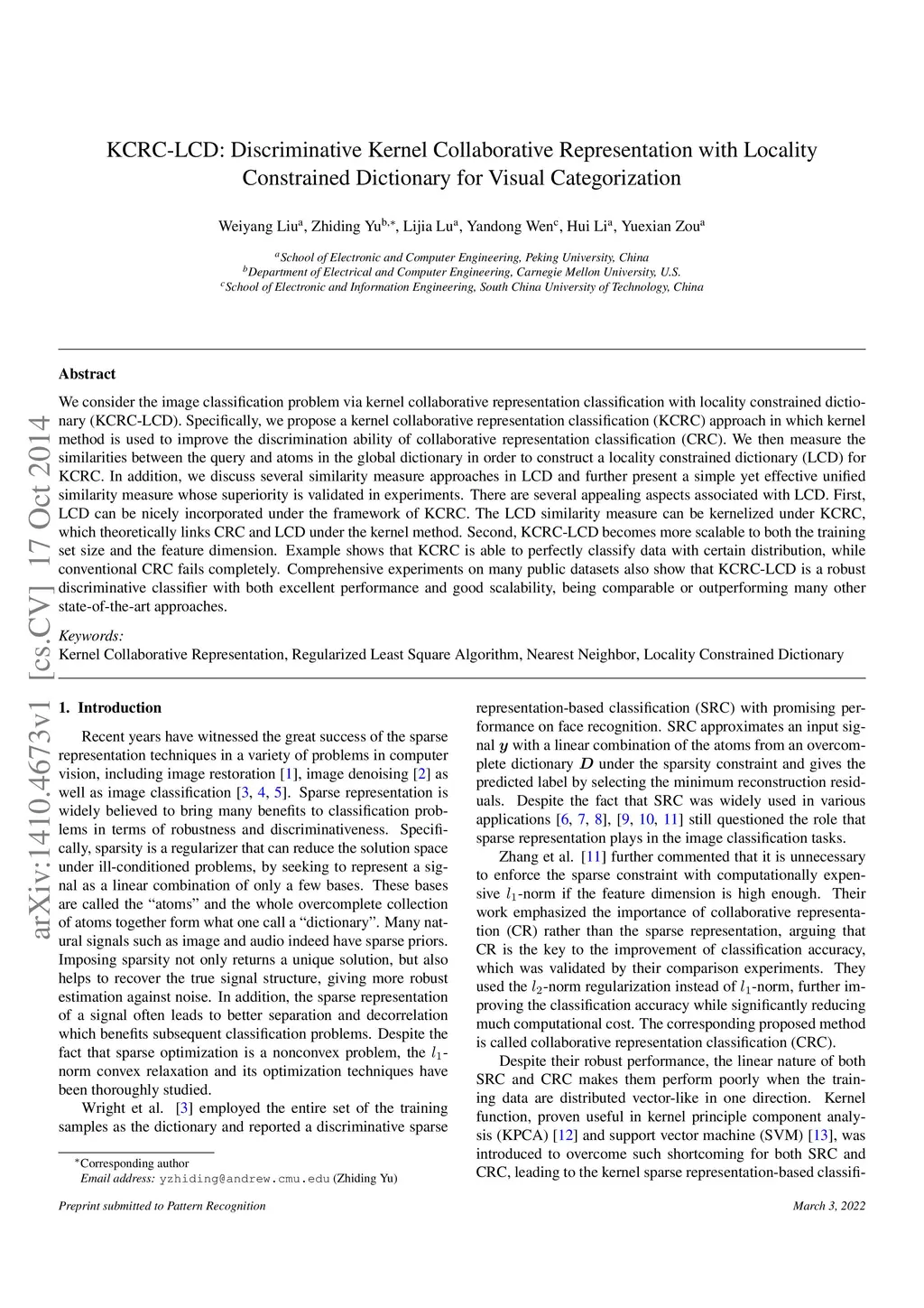 KCRC-LCD: Discriminative Kernel Collaborative Representation with