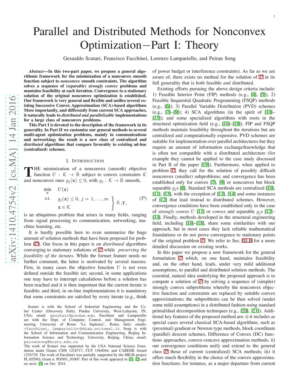 Parallel and Distributed Methods for Nonconvex Optimization-Part I: