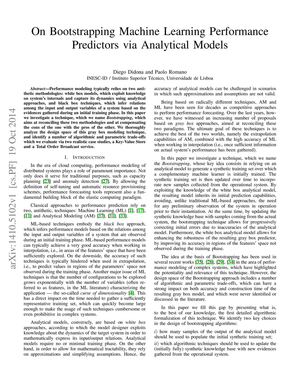 Performance modeling typically relies on two antithetic methodologies: white box models, which exploit knowledge on system's internals and capture its dynamics using analytical approaches, and black box techniques, which infer relations among the input and output variables of a system based on the evidences gathered during an initial training phase. In this paper we investigate a technique, which we name Bootstrapping, which aims at reconciling these two methodologies and at compensating the cons of the one with the pros of the other. We thoroughly analyze the design space of this gray box modeling technique, and identify a number of algorithmic and parametric trade-offs which we evaluate via two realistic case studies, a Key-Value Store and a Total Order Broadcast service.