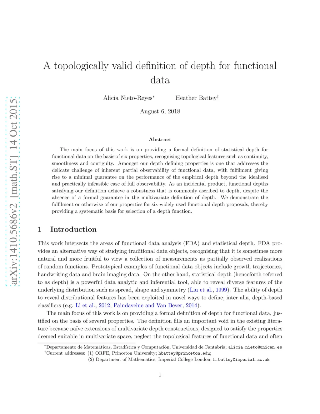 A topologically valid definition of depth for functional data