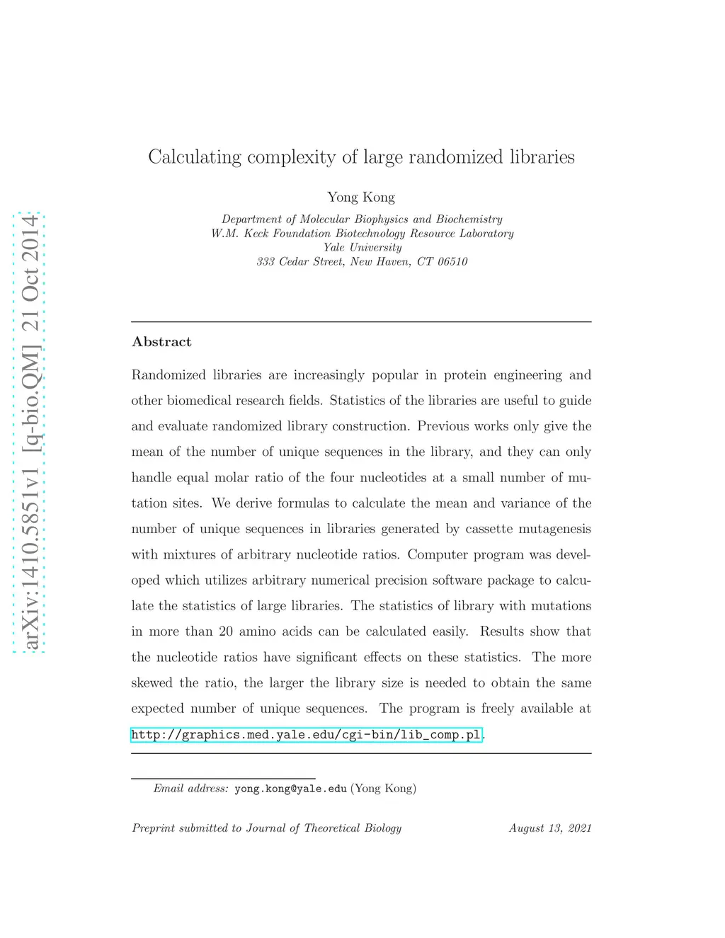 Calculating complexity of large randomized libraries
