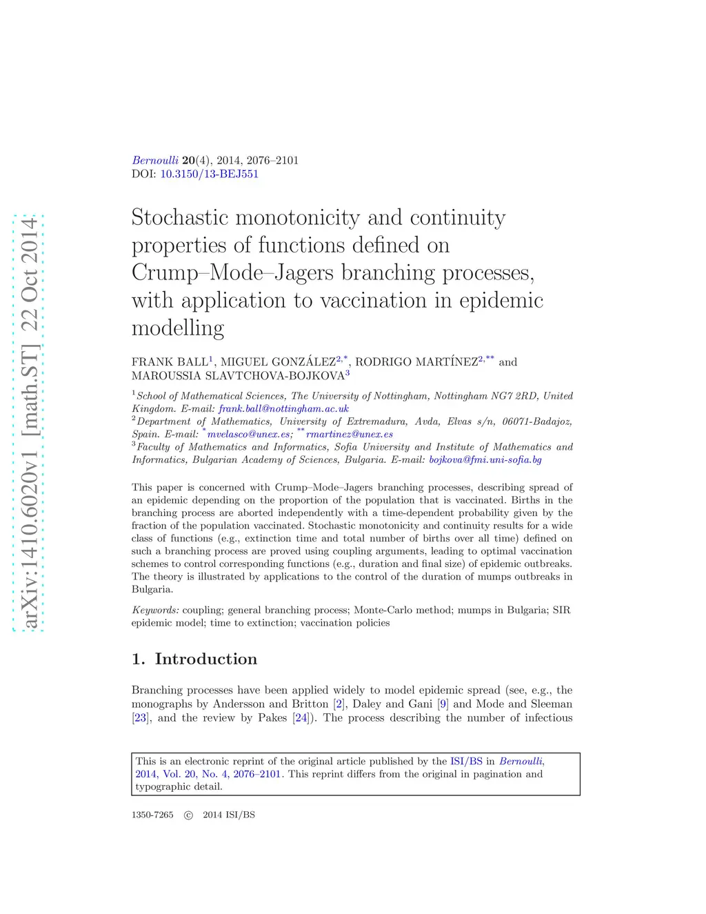 on Crump-Mode-Jagers branching processes, with application to vaccination in
