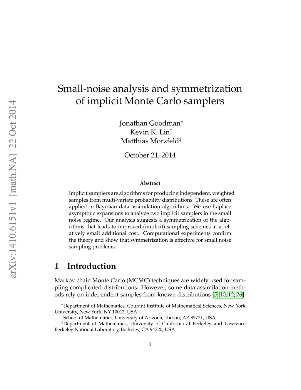 Small-noise analysis and symmetrization of implicit Monte Carlo samplers