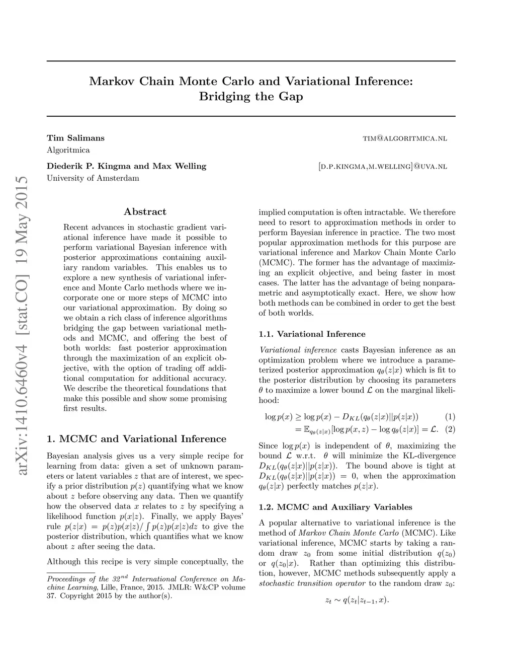 Markov Chain Monte Carlo and Variational Inference: Bridging the Gap