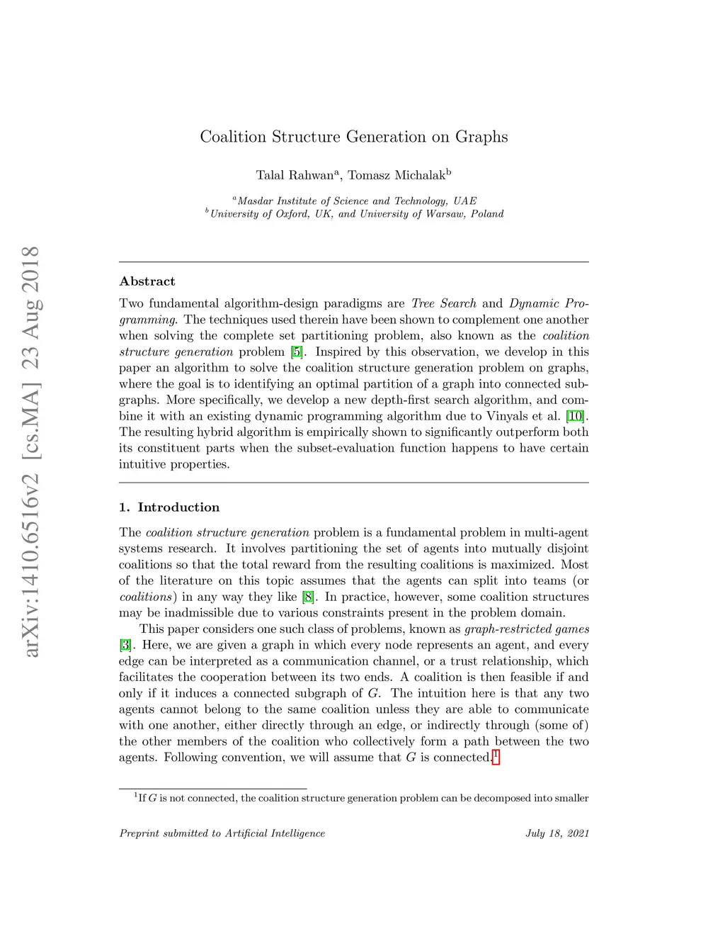 Two fundamental algorithm-design paradigms are Tree Search and Dynamic Programming. The techniques used therein have been shown to complement one another when solving the complete set partitioning problem, also known as the coalition structure generation problem [5]. Inspired by this observation, we develop in this paper an algorithm to solve the coalition structure generation problem on graphs, where the goal is to identifying an optimal partition of a graph into connected subgraphs. More specifically, we develop a new depth-first search algorithm, and combine it with an existing dynamic programming algorithm due to Vinyals et al. [9]. The resulting hybrid algorithm is empirically shown to significantly outperform both its constituent parts when the subset-evaluation function happens to have certain intuitive properties.