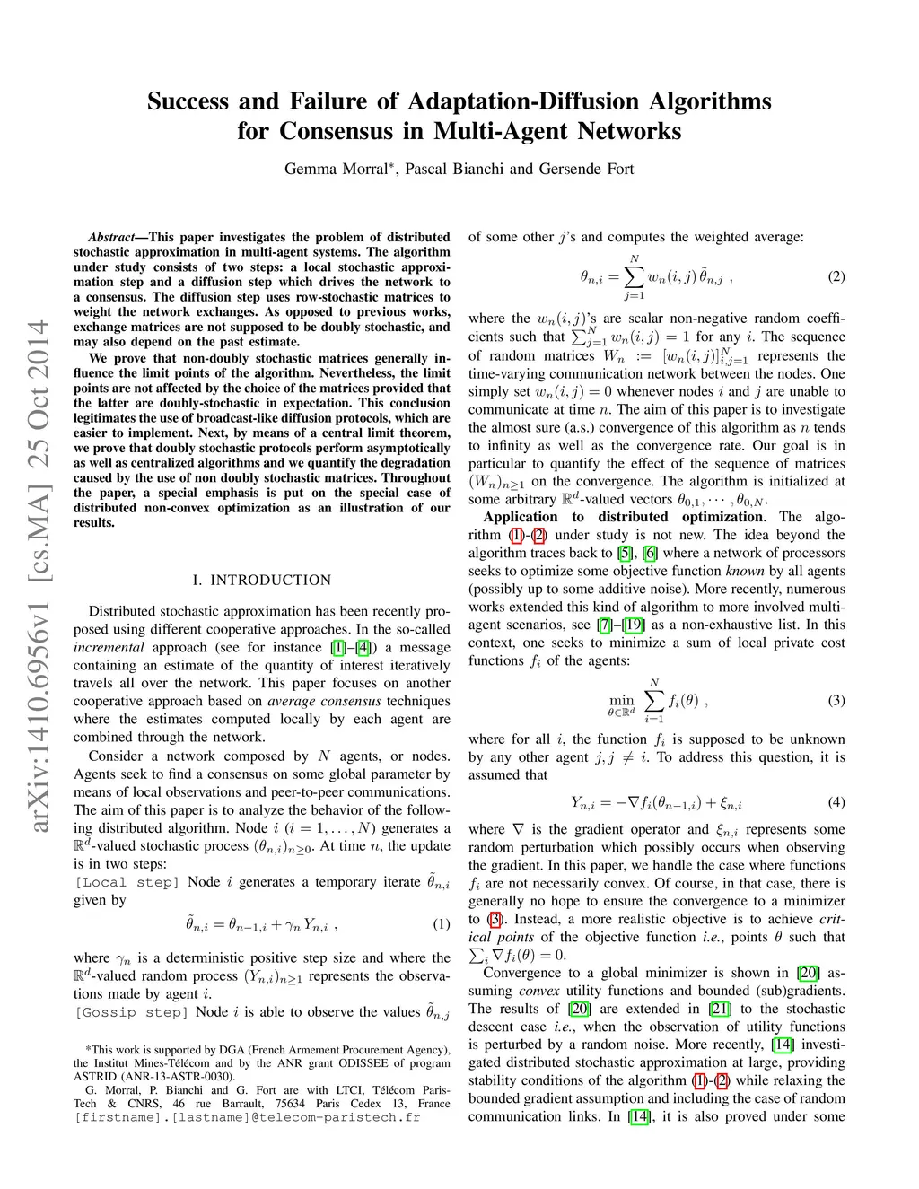 This paper investigates the problem of distributed stochastic approximation in multi-agent systems. The algorithm under study consists of two steps: a local stochastic approximation step and a diffusion step which drives the network to a consensus. The diffusion step uses row-stochastic matrices to weight the network exchanges. As opposed to previous works, exchange matrices are not supposed to be doubly stochastic, and may also depend on the past estimate. We prove that non-doubly stochastic matrices generally influence the limit points of the algorithm. Nevertheless, the limit points are not affected by the choice of the matrices provided that the latter are doubly-stochastic in expectation. This conclusion legitimates the use of broadcast-like diffusion protocols, which are easier to implement. Next, by means of a central limit theorem, we prove that doubly stochastic protocols perform asymptotically as well as centralized algorithms and we quantify the degradation caused by the use of non doubly stochastic matrices. Throughout the paper, a special emphasis is put on the special case of distributed non-convex optimization as an illustration of our results.