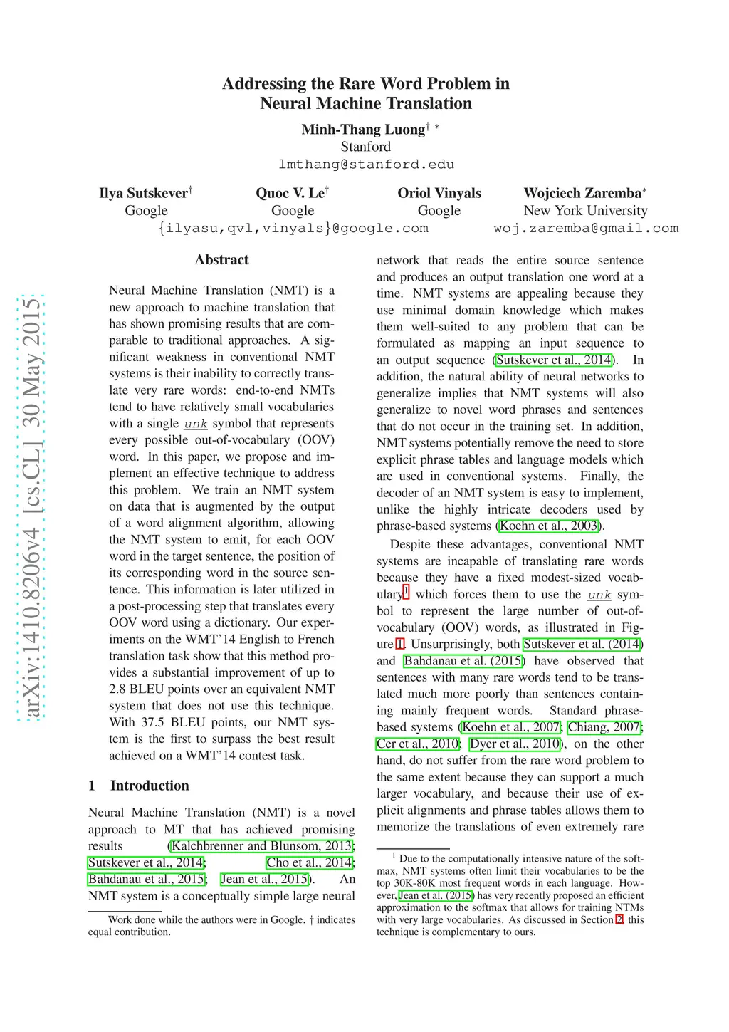 Addressing the Rare Word Problem in Neural Machine Translation