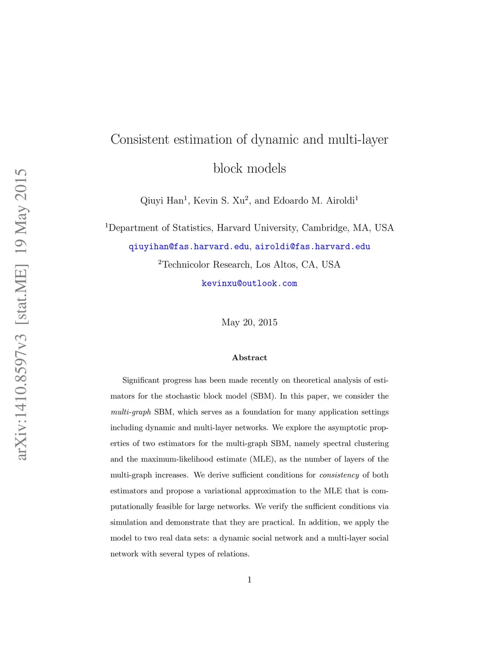 Consistent Estimation of Dynamic and Multi-layer Networks