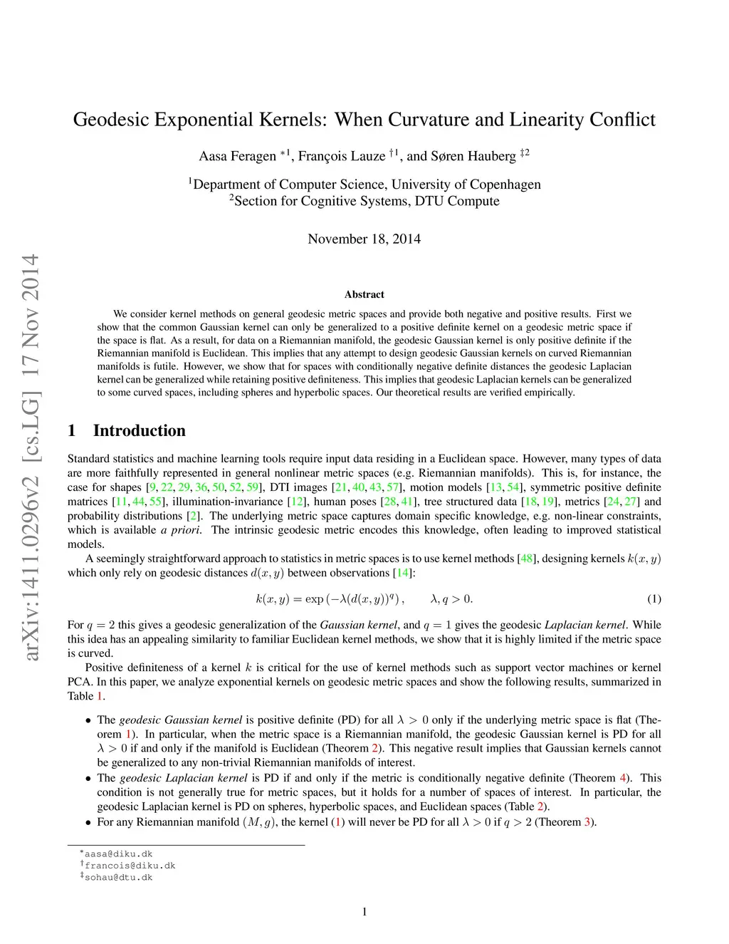 Geodesic Exponential Kernels: When Curvature and Linearity Conflict