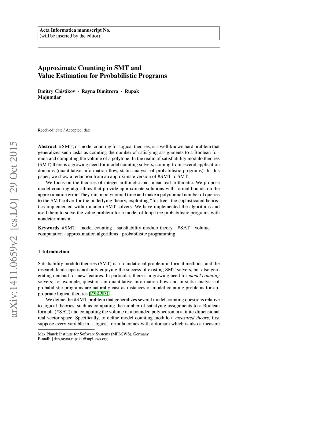 Approximate Counting in SMT and Value Estimation for Probabilistic