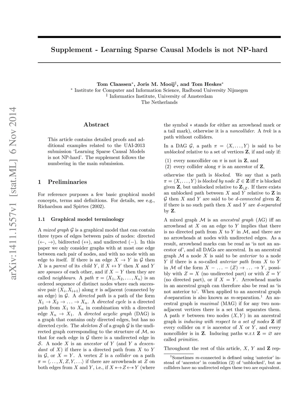 Proof Supplement - Learning Sparse Causal Models is not NP-hard