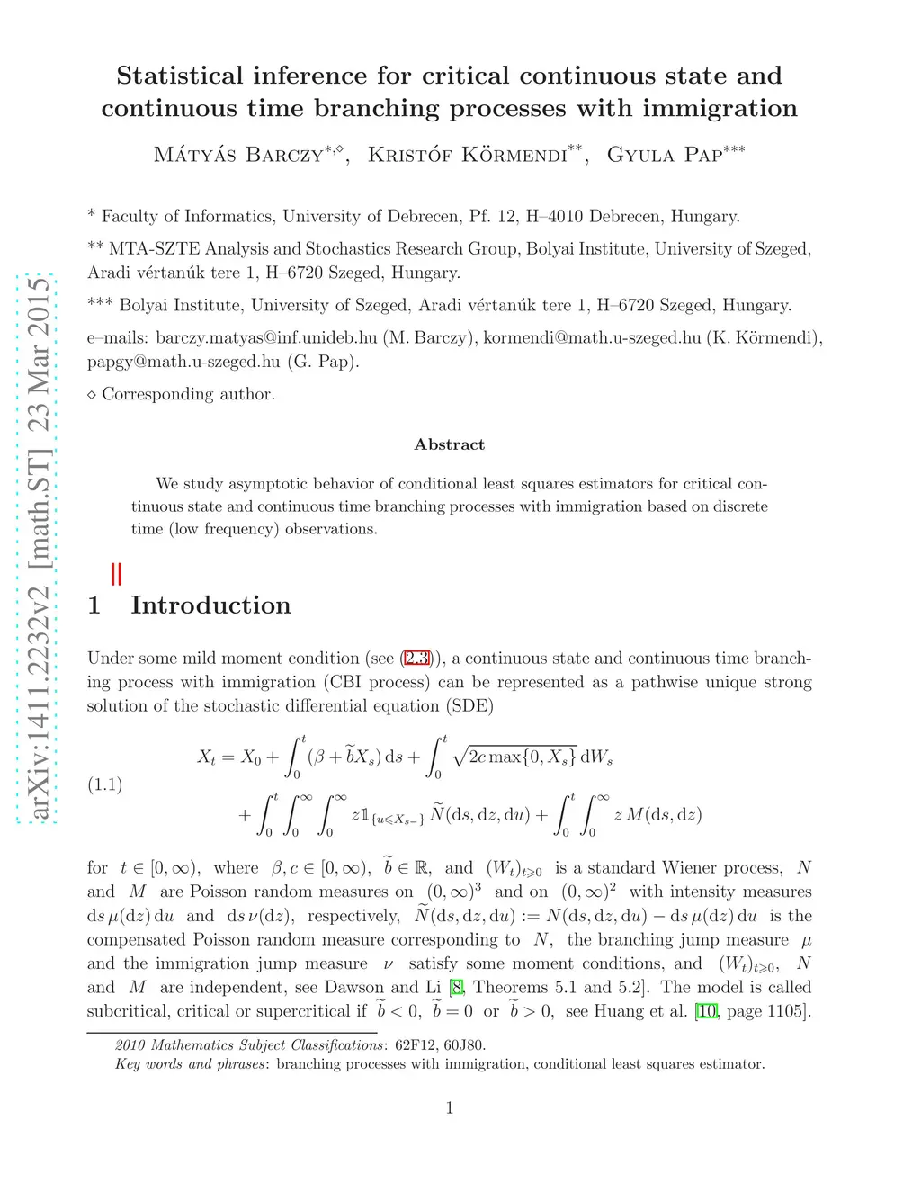 We study asymptotic behavior of conditional least squares estimators for critical continuous state and continuous time branching processes with immigration based on discrete time (low frequency) observations.