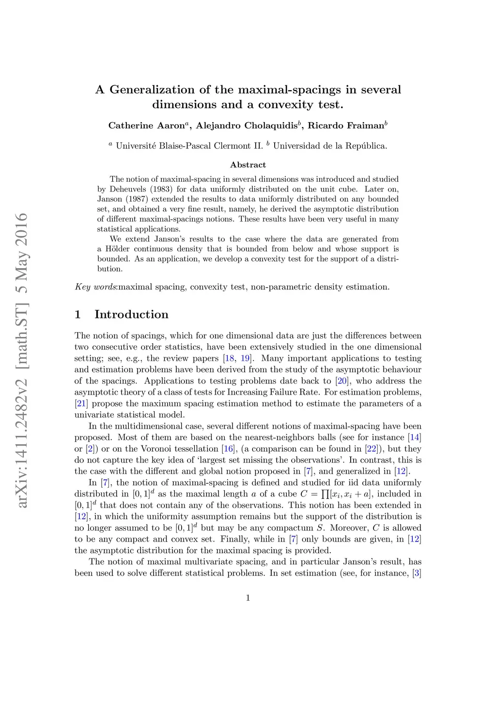The notion of maximal-spacing in several dimensions was introduced and studied by Deheuvels (1983) for data uniformly distributed on the unit cube. Later on, Janson (1987) extended the results to data uniformly distributed on any bounded set, and obtained a very fine result, namely, he derived the asymptotic distribution of different maximal-spacings notions. These results have been very useful in many statistical applications. We extend Janson's results to the case where the data are generated from a H\"older continuous density that is bounded from below and whose support is bounded. As an application, we develop a convexity test for the support of a distribution.