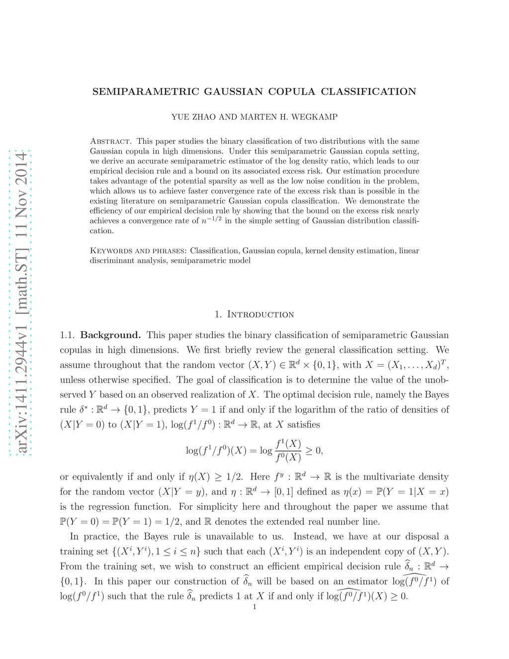 Semiparametric Gaussian copula classification
