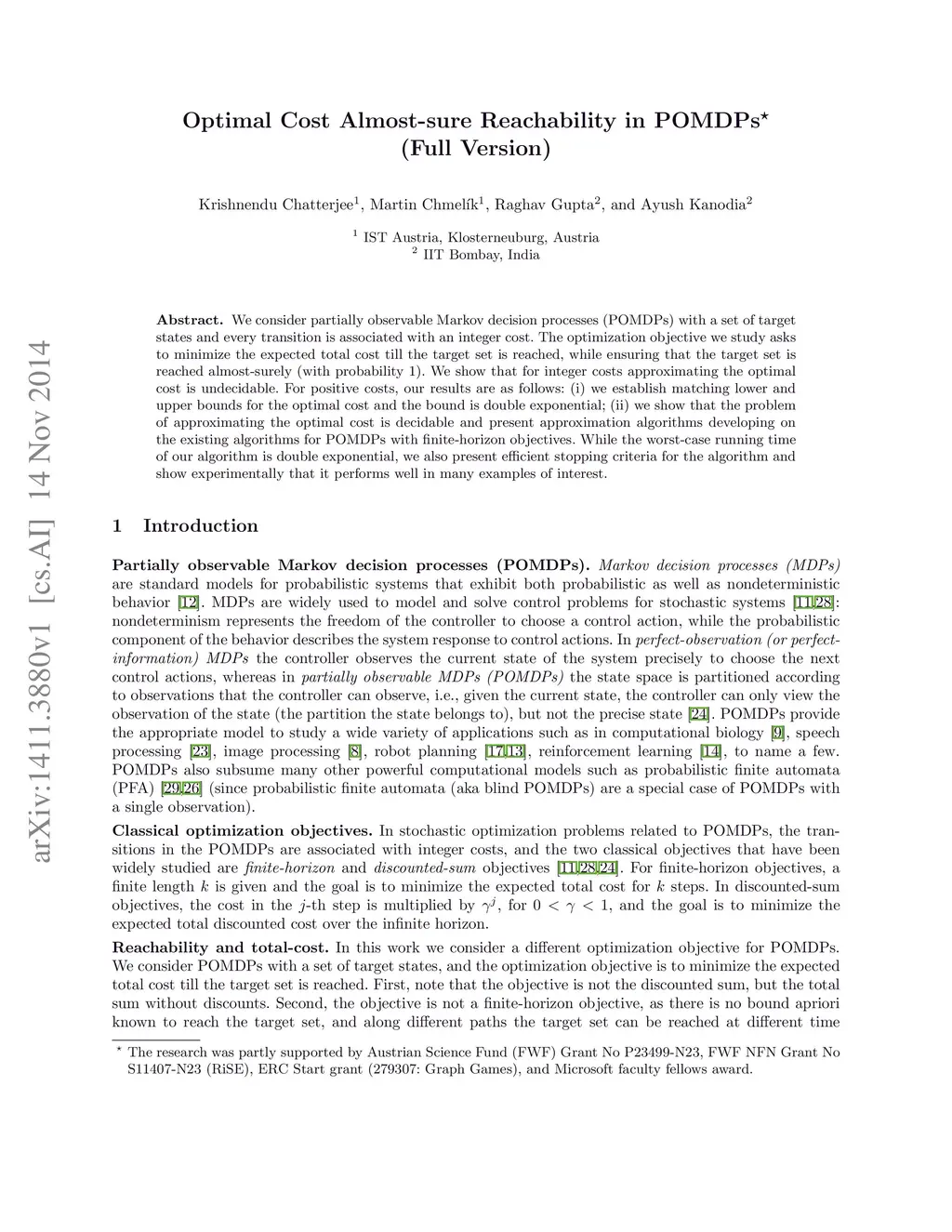 We consider partially observable Markov decision processes (POMDPs) with a set of target states and every transition is associated with an integer cost. The optimization objective we study asks to minimize the expected total cost till the target set is reached, while ensuring that the target set is reached almost-surely (with probability 1). We show that for integer costs approximating the optimal cost is undecidable. For positive costs, our results are as follows: (i) we establish matching lower and upper bounds for the optimal cost and the bound is double exponential; (ii) we show that the problem of approximating the optimal cost is decidable and present approximation algorithms developing on the existing algorithms for POMDPs with finite-horizon objectives. While the worst-case running time of our algorithm is double exponential, we also present efficient stopping criteria for the algorithm and show experimentally that it performs well in many examples of interest.