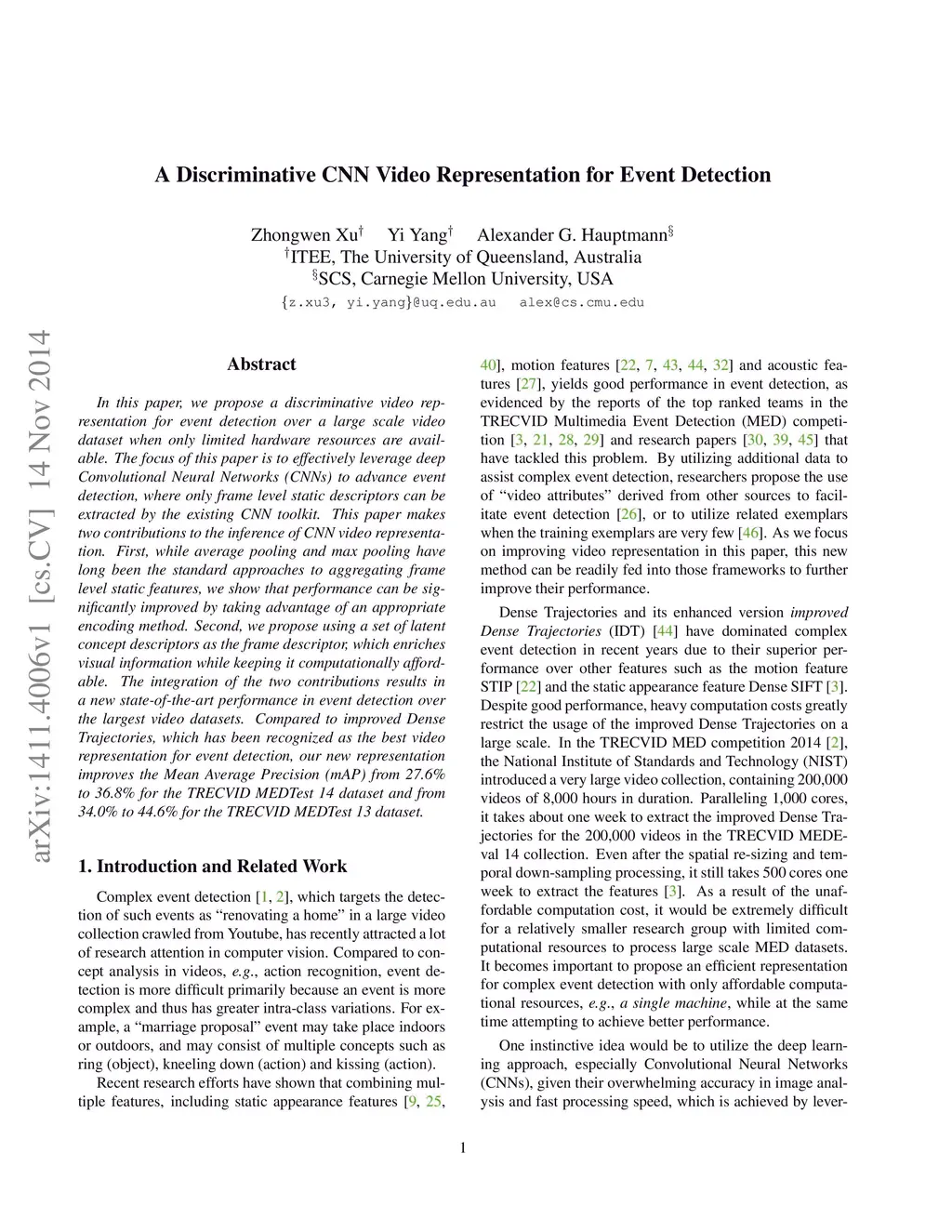 A Discriminative CNN Video Representation for Event Detection