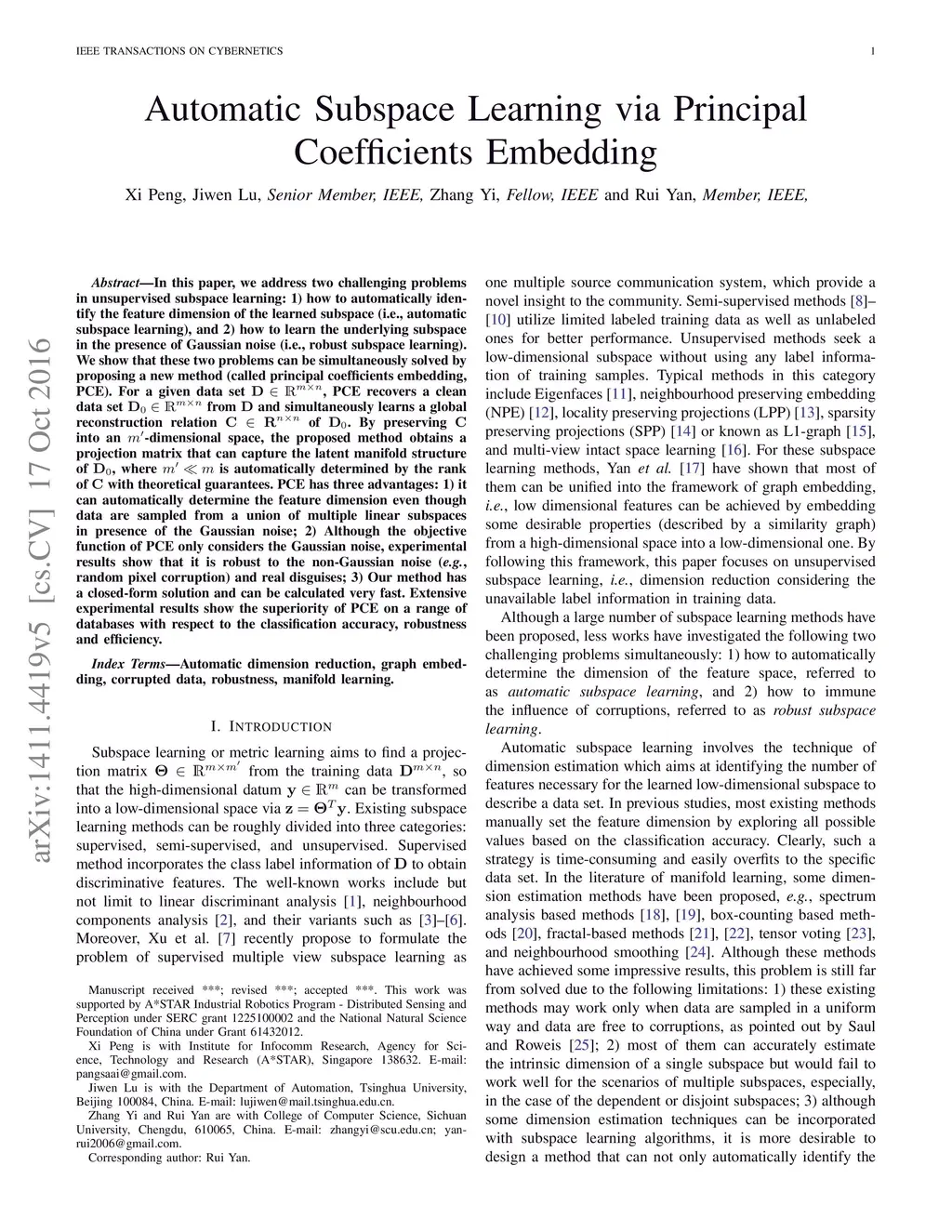 Automatic Subspace Learning via Principal Coefficients Embedding