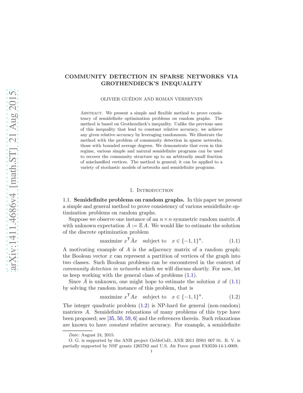 Community detection in sparse networks via Grothendieck's inequality