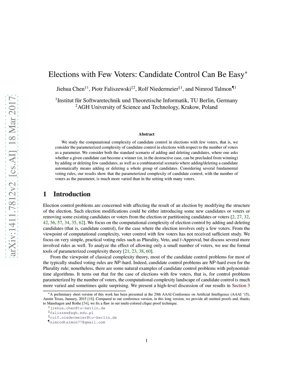 Elections with Few Voters: Candidate Control Can Be Easy