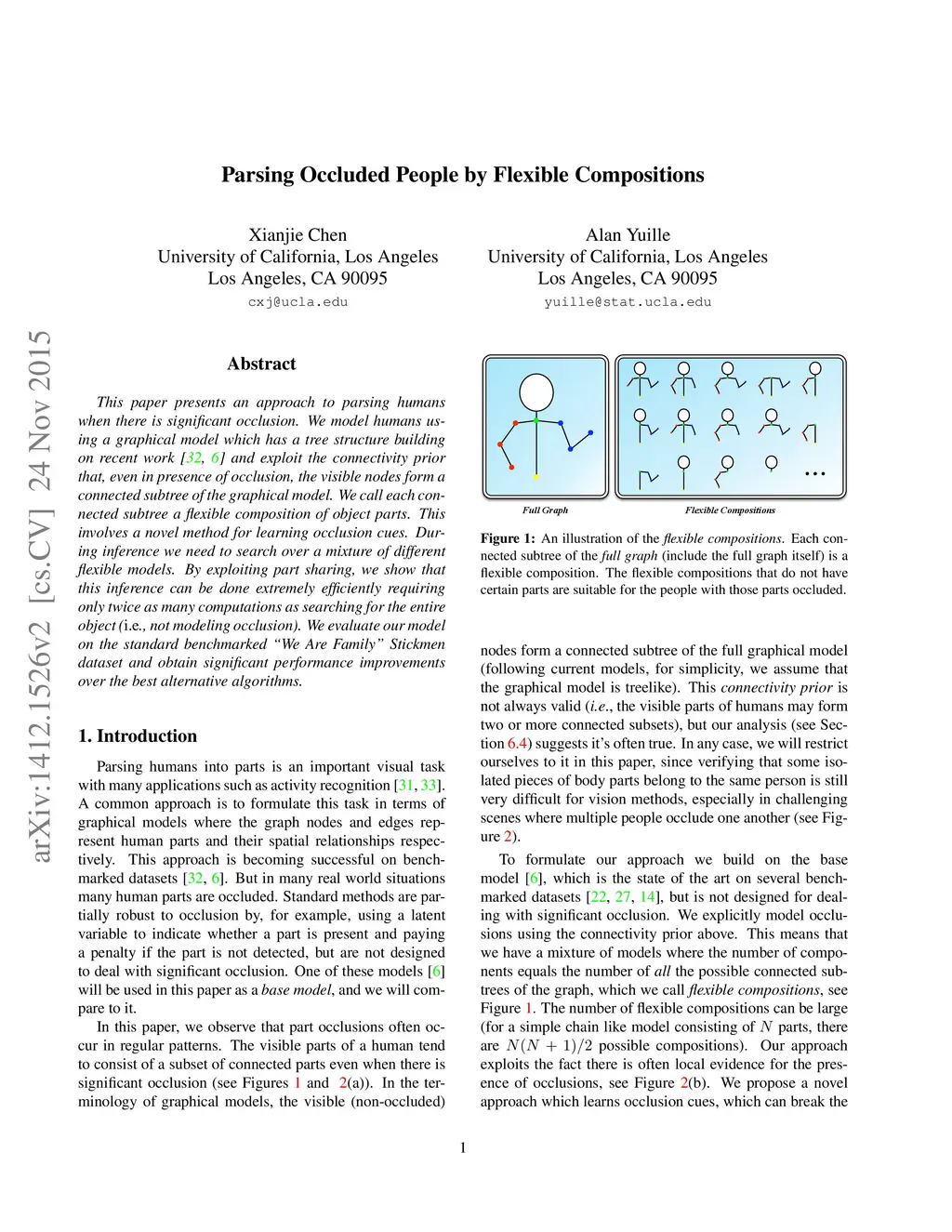 This paper presents an approach to parsing humans when there is significant occlusion. We model humans using a graphical model which has a tree structure building on recent work [32, 6] and exploit the connectivity prior that, even in presence of occlusion, the visible nodes form a connected subtree of the graphical model. We call each connected subtree a flexible composition of object parts. This involves a novel method for learning occlusion cues. During inference we need to search over a mixture of different flexible models. By exploiting part sharing, we show that this inference can be done extremely efficiently requiring only twice as many computations as searching for the entire object (i.e., not modeling occlusion). We evaluate our model on the standard benchmarked "We Are Family" Stickmen dataset and obtain significant performance improvements over the best alternative algorithms.