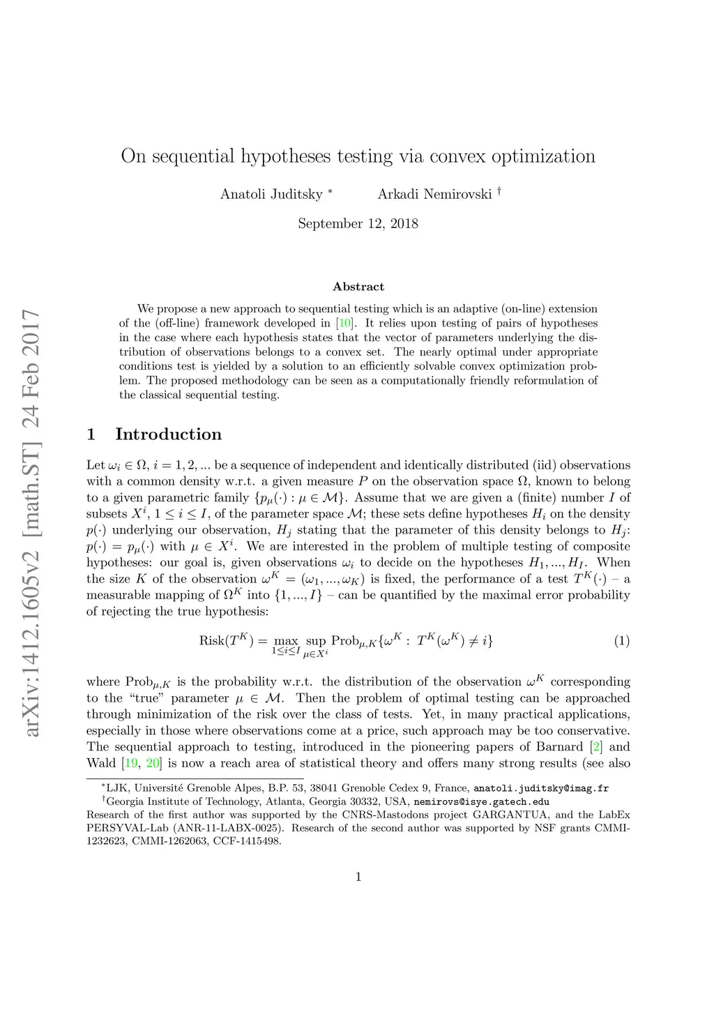 On sequential hypotheses testing via convex optimization