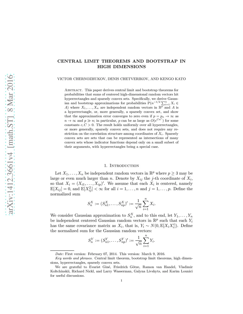 Central Limit Theorems and Bootstrap in High Dimensions