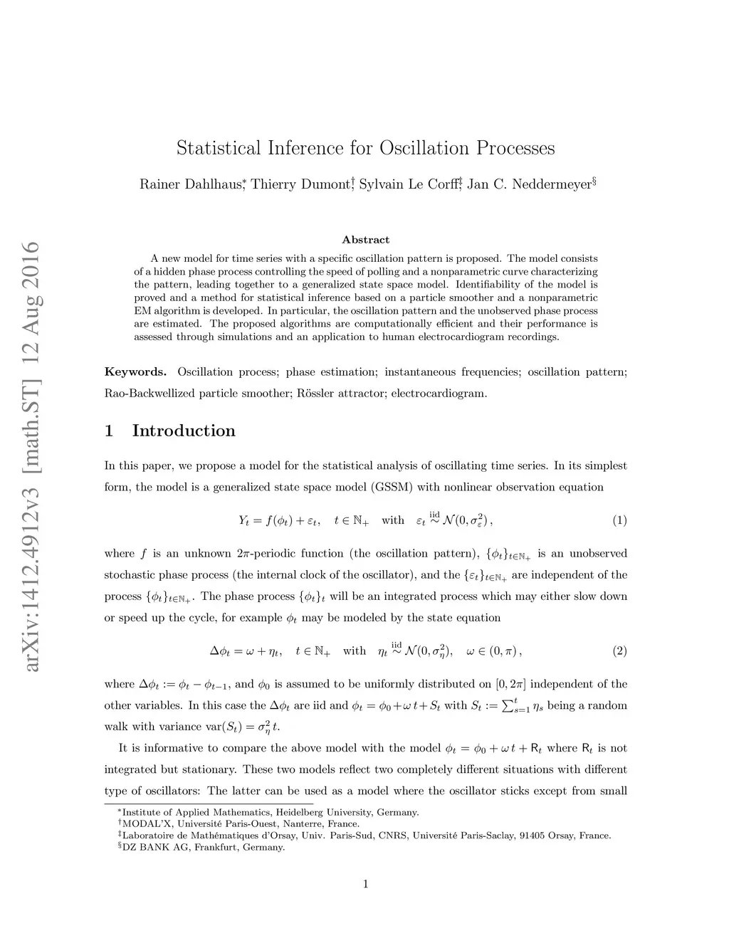 A new model for time series with a specific oscillation pattern is proposed. The model consists of a hidden phase process controlling the speed of polling and a nonparametric curve characterizing the pattern, leading together to a generalized state space model. Identifiability of the model is proved and a method for statistical inference based on a particle smoother and a nonparametric EM algorithm is developed. In particular, the oscillation pattern and the unobserved phase process are estimated. The proposed algorithms are computationally efficient and their performance is assessed through simulations and an application to human electrocardiogram recordings.