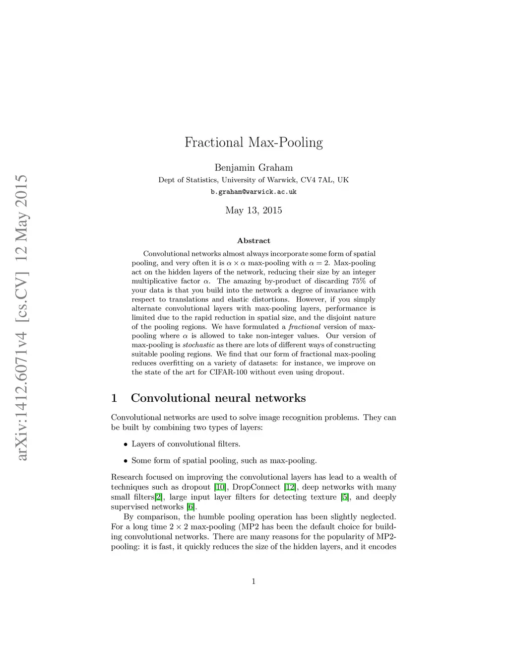 Fractional Max-Pooling
