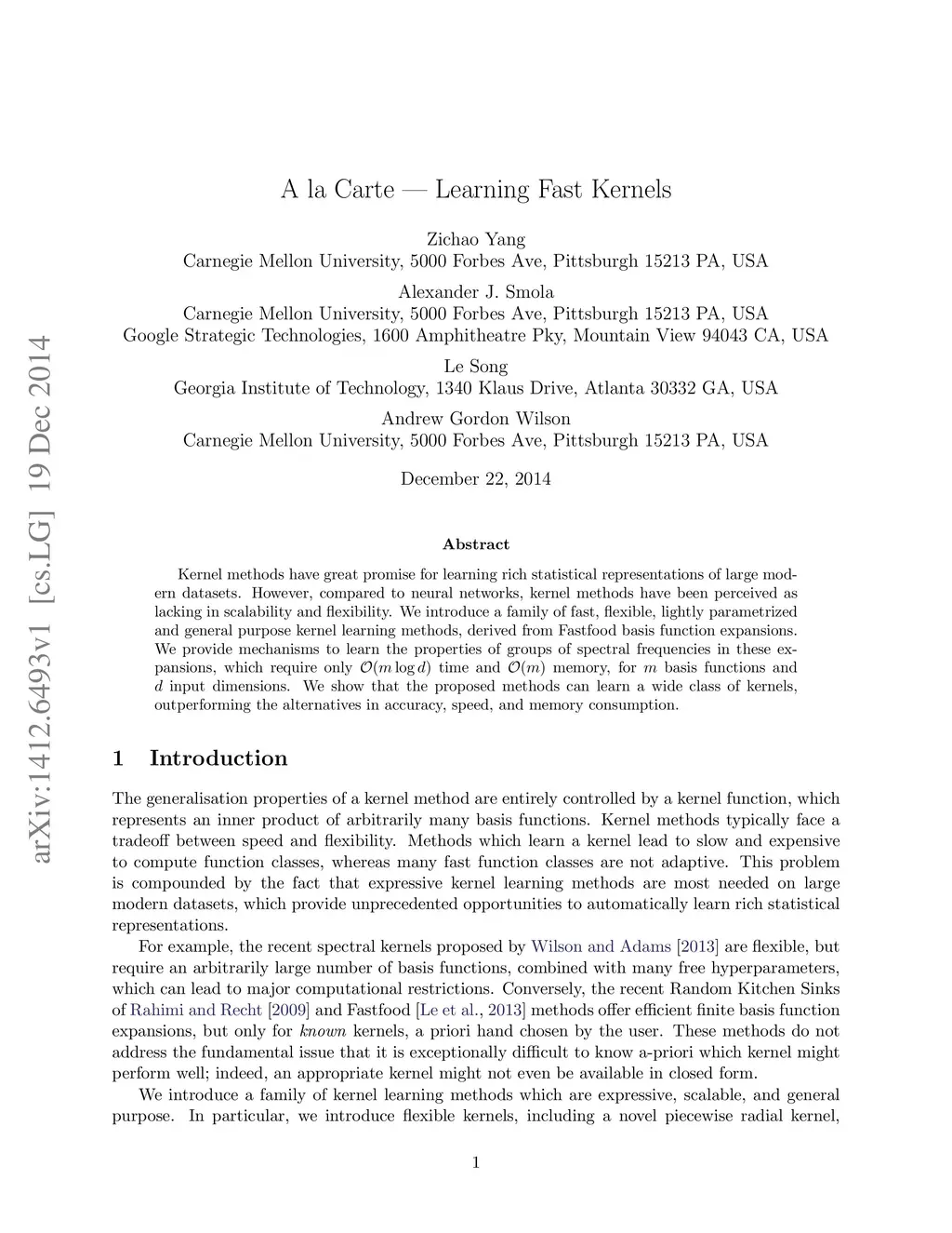 Kernel methods have great promise for learning rich statistical representations of large modern datasets. However, compared to neural networks, kernel methods have been perceived as lacking in scalability and flexibility. We introduce a family of fast, flexible, lightly parametrized and general purpose kernel learning methods, derived from Fastfood basis function expansions. We provide mechanisms to learn the properties of groups of spectral frequencies in these expansions, which require only O(mlogd) time and O(m) memory, for m basis functions and d input dimensions. We show that the proposed methods can learn a wide class of kernels, outperforming the alternatives in accuracy, speed, and memory consumption.