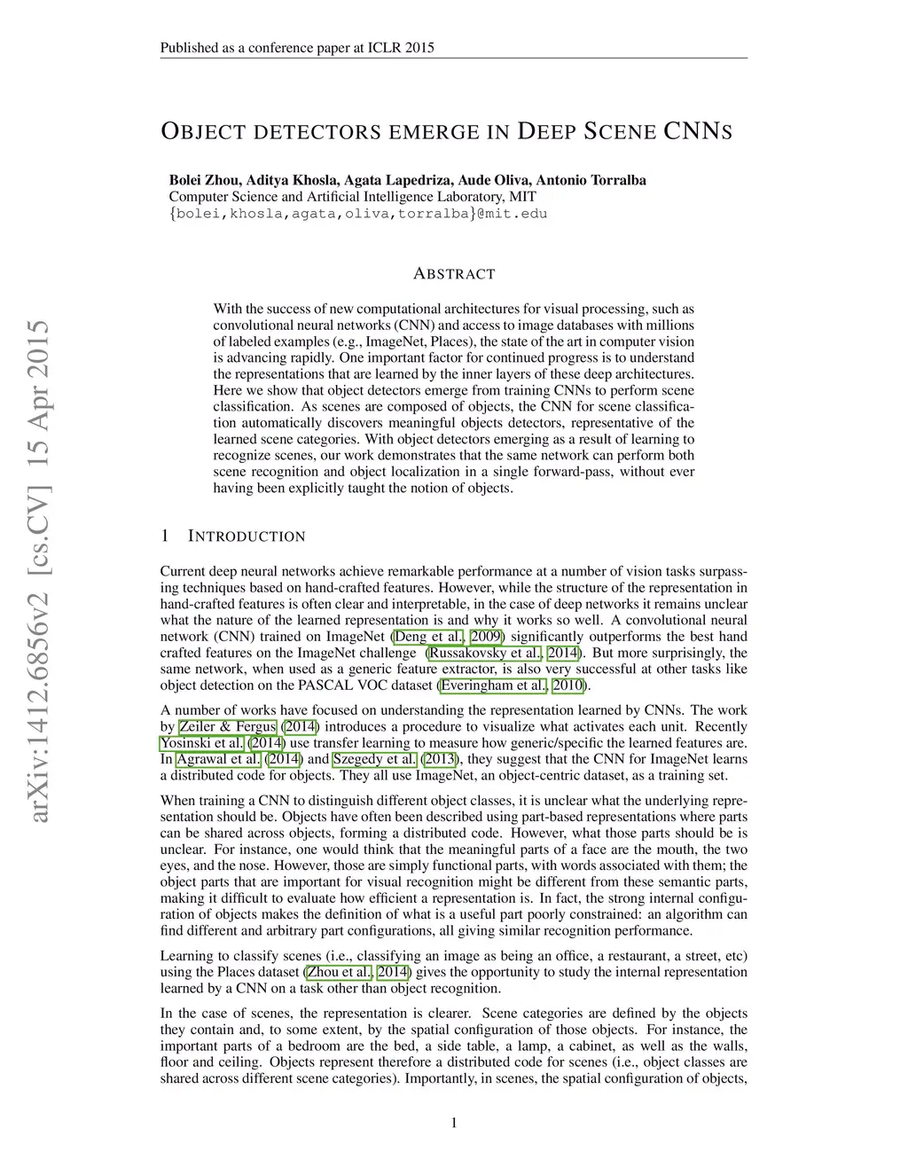 Object Detectors Emerge in Deep Scene CNNs