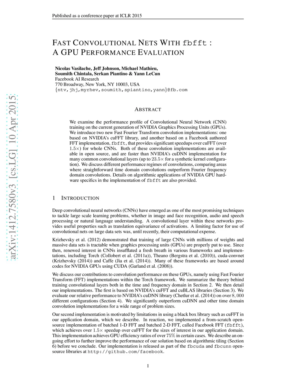 Fast Convolutional Nets With fbfft: A GPU Performance Evaluation