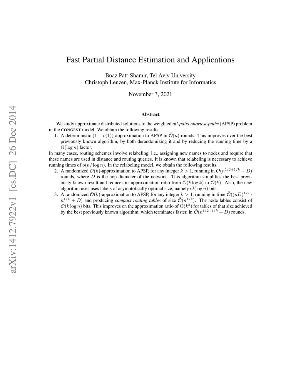 We study approximate distributed solutions to the weighted {\it all-pairs-shortest-paths} (APSP) problem in the CONGEST model. We obtain the following results. A deterministic -approximation to APSP in rounds. This improves over the best previously known algorithm, by both derandomizing it and by reducing the running time by a factor. In many cases, routing schemes involve relabeling, i.e., assigning new names to nodes and require that these names are used in distance and routing queries. It is known that relabeling is necessary to achieve running times of . In the relabeling model, we obtain the following results. A randomized -approximation to APSP, for any integer , running in rounds, where is the hop diameter of the network. This algorithm simplifies the best previously known result and reduces its approximation ratio from to . Also, the new algorithm uses uses labels of asymptotically optimal size, namely bits. A randomized -approximation to APSP, for any integer , running in time and producing {\it compact routing tables} of size . The node lables consist of bits. This improves on the approximation ratio of for tables of that size achieved by the best previously known algorithm, which terminates faster, in rounds.