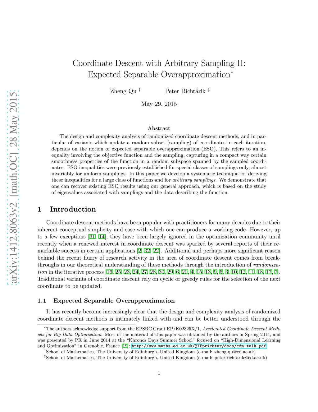 Coordinate Descent with Arbitrary Sampling II: Expected Separable