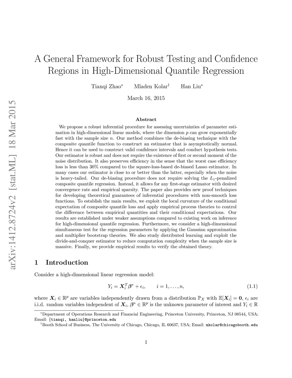We propose a robust inferential procedure for assessing uncertainties of parameter estimation in high-dimensional linear models, where the dimension can grow exponentially fast with the sample size . Our method combines the de-biasing technique with the composite quantile function to construct an estimator that is asymptotically normal. Hence it can be used to construct valid confidence intervals and conduct hypothesis tests. Our estimator is robust and does not require the existence of first or second moment of the noise distribution. It also preserves efficiency in the sense that the worst case efficiency loss is less than 30\% compared to the square-loss-based de-biased Lasso estimator. In many cases our estimator is close to or better than the latter, especially when the noise is heavy-tailed. Our de-biasing procedure does not require solving the -penalized composite quantile regression. Instead, it allows for any first-stage estimator with desired convergence rate and empirical sparsity. The paper also provides new proof techniques for developing theoretical guarantees of inferential procedures with non-smooth loss functions. To establish the main results, we exploit the local curvature of the conditional expectation of composite quantile loss and apply empirical process theories to control the difference between empirical quantities and their conditional expectations. Our results are established under weaker assumptions compared to existing work on inference for high-dimensional quantile regression. Furthermore, we consider a high-dimensional simultaneous test for the regression parameters by applying the Gaussian approximation and multiplier bootstrap theories. We also study distributed learning and exploit the divide-and-conquer estimator to reduce computation complexity when the sample size is massive. Finally, we provide empirical results to verify the theory.