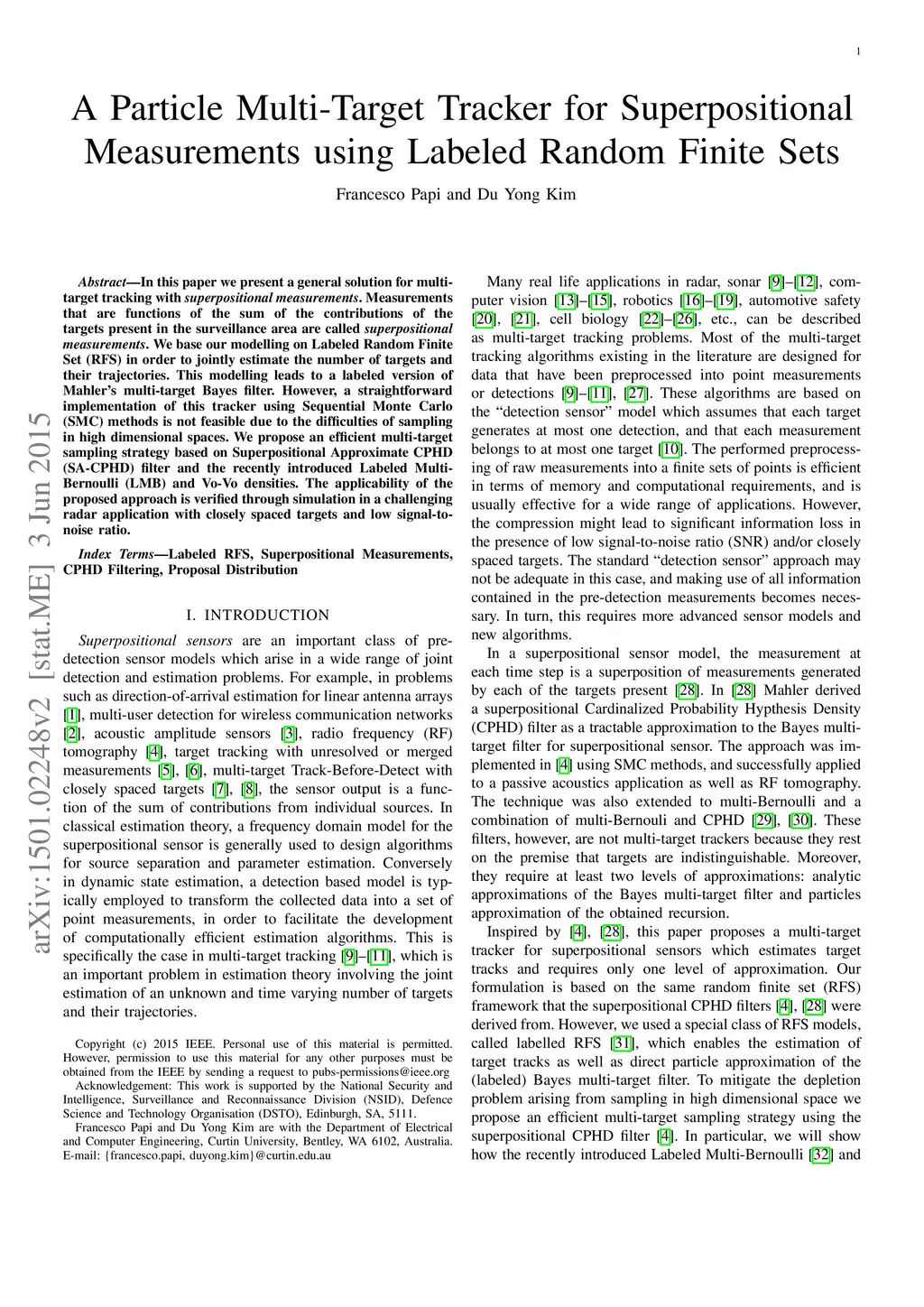 A Particle Multi-Target Tracker for Superpositional Measurements using