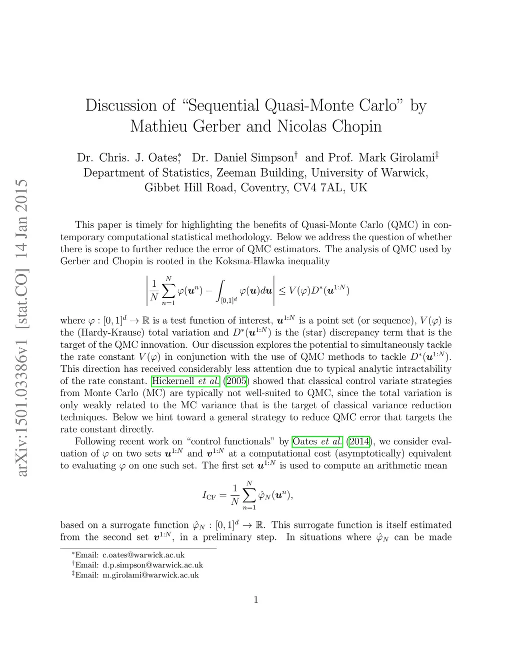 A discussion on the possibility of reducing the variance of quasi-Monte Carlo estimators in applications. Further details are provided in the accompanying paper "Variance Reduction for Quasi-Monte Carlo".