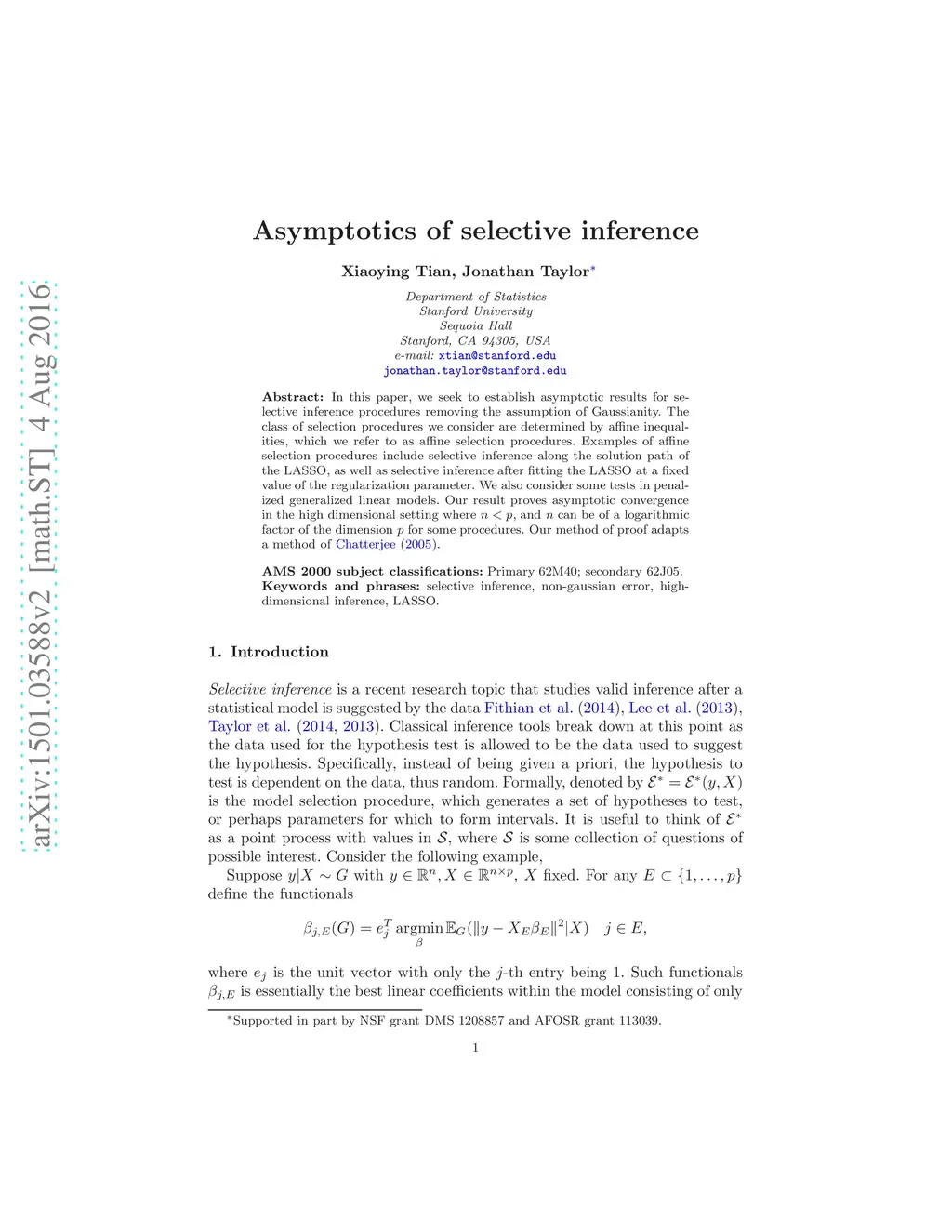 In this paper, we seek to establish asymptotic results for selective inference procedures removing the assumption of Gaussianity. The class of selection procedures we consider are determined by affine inequalities, which we refer to as affine selection procedures. Examples of affine selection procedures include post-selection inference along the solution path of the LASSO, as well as post-selection inference after fitting the LASSO at a fixed value of the regularization parameter. We also consider some tests in penalized generalized linear models. Our method of proof adapts a method of Chatterjee (2005).