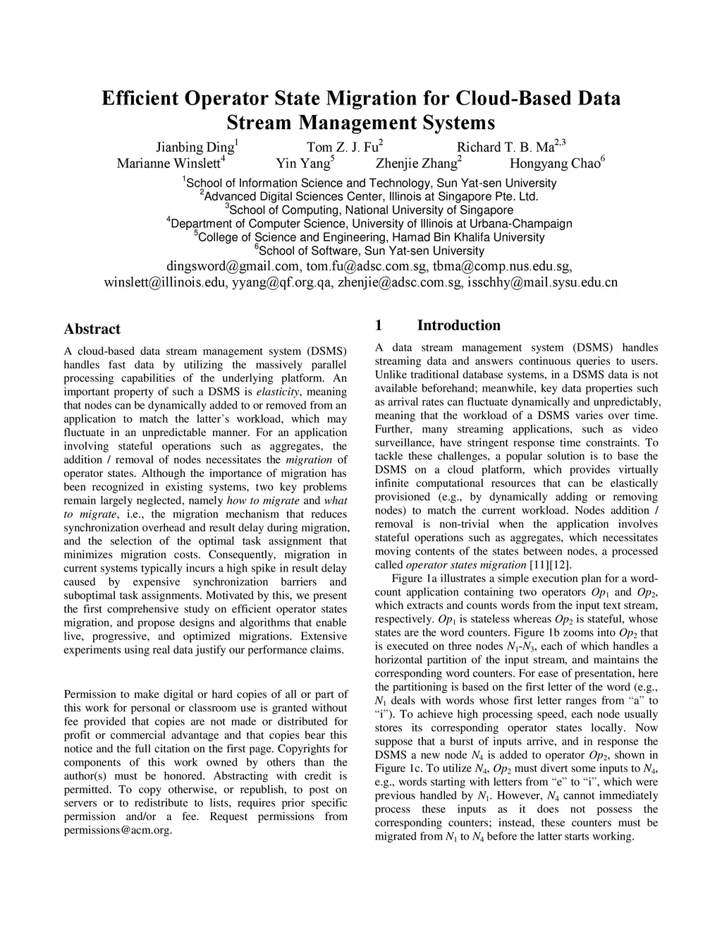A cloud-based data stream management system (DSMS) handles fast data by utilizing the massively parallel processing capabilities of the underlying platform. An important property of such a DSMS is elasticity, meaning that nodes can be dynamically added to or removed from an application to match the latter's workload, which may fluctuate in an unpredictable manner. For an application involving stateful operations such as aggregates, the addition / removal of nodes necessitates the migration of operator states. Although the importance of migration has been recognized in existing systems, two key problems remain largely neglected, namely how to migrate and what to migrate, i.e., the migration mechanism that reduces synchronization overhead and result delay during migration, and the selection of the optimal task assignment that minimizes migration costs. Consequently, migration in current systems typically incurs a high spike in result delay caused by expensive synchronization barriers and suboptimal task assignments. Motivated by this, we present the first comprehensive study on efficient operator states migration, and propose designs and algorithms that enable live, progressive, and optimized migrations. Extensive experiments using real data justify our performance claims.