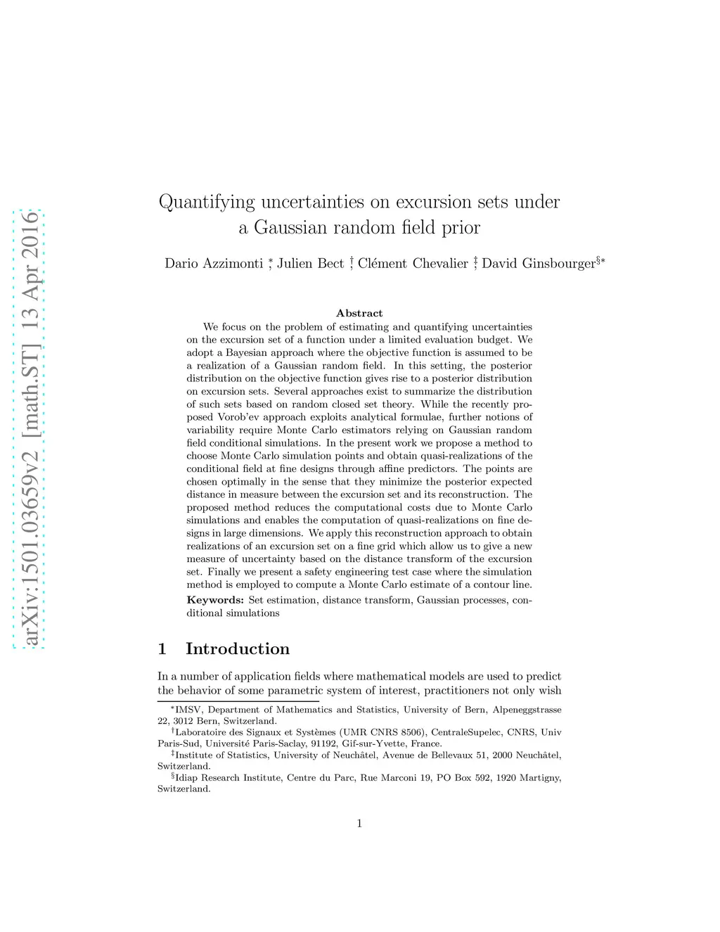Quantifying uncertainties on excursion sets under a Gaussian random