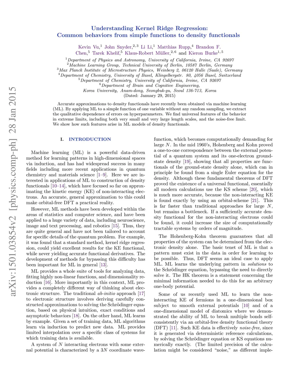 Accurate approximations to density functionals have recently been obtained via machine learning (ML). By applying ML to a simple function of one variable without any random sampling, we extract the qualitative dependence of errors on hyperparameters. We find universal features of the behavior in extreme limits, including both very small and very large length scales, and the noise-free limit. We show how such features arise in ML models of density functionals.