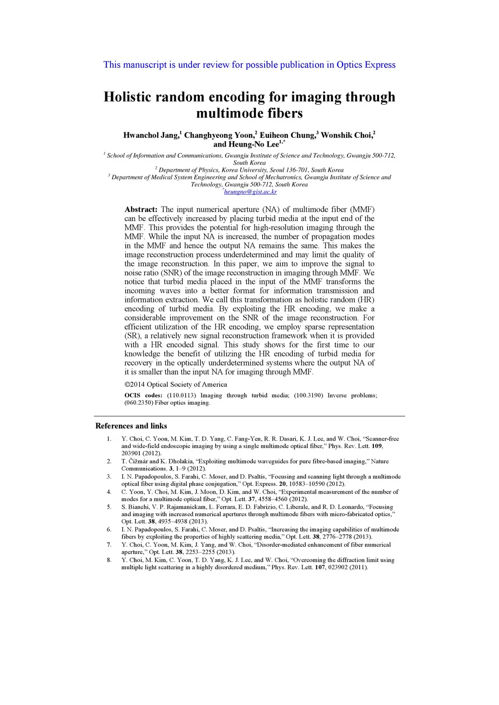 Holistic random encoding for imaging through multimode fibers