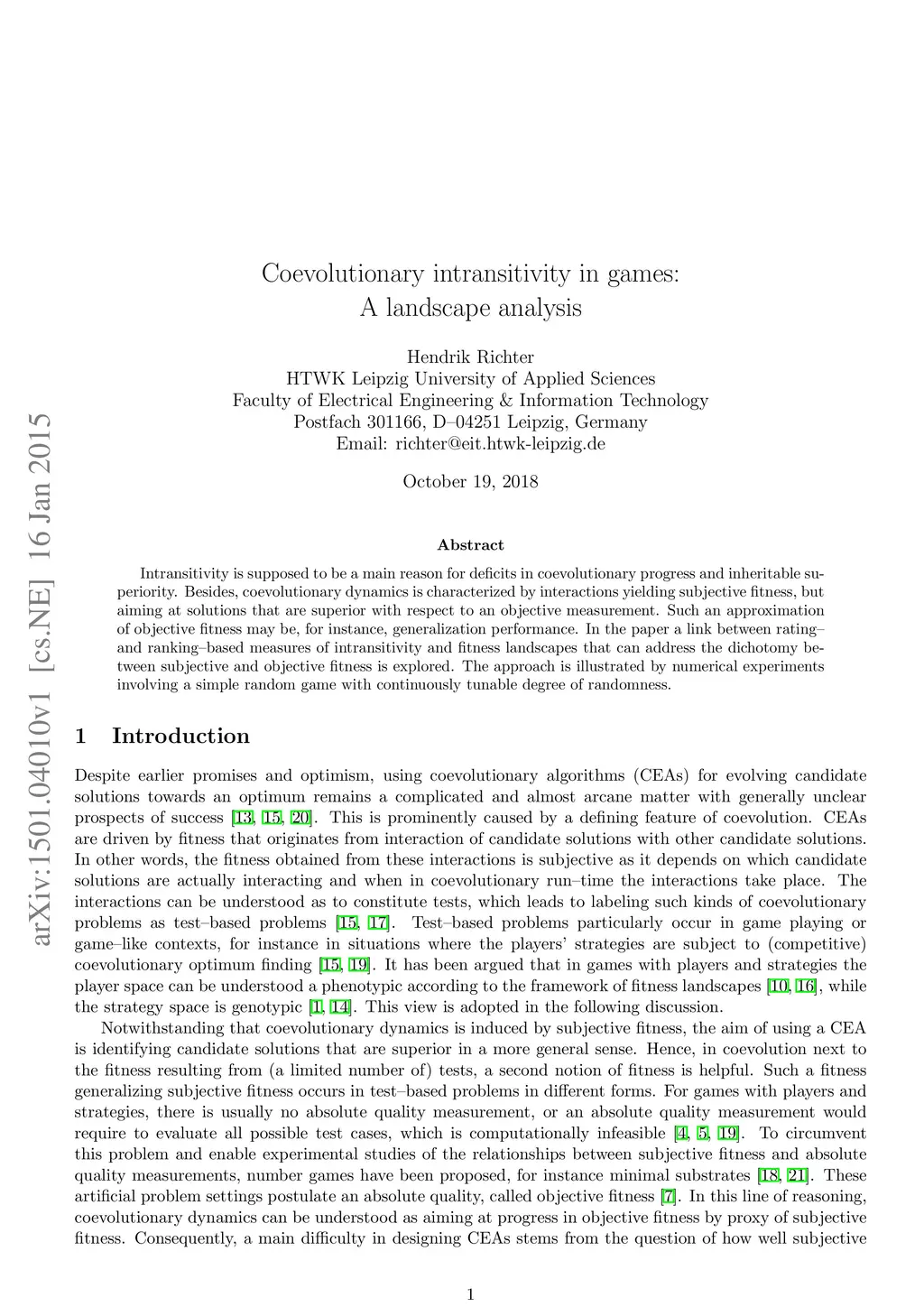 Intransitivity is supposed to be a main reason for deficits in coevolutionary progress and inheritable superiority. Besides, coevolutionary dynamics is characterized by interactions yielding subjective fitness, but aiming at solutions that are superior with respect to an objective measurement. Such an approximation of objective fitness may be, for instance, generalization performance. In the paper a link between rating-- and ranking--based measures of intransitivity and fitness landscapes that can address the dichotomy between subjective and objective fitness is explored. The approach is illustrated by numerical experiments involving a simple random game with continuously tunable degree of randomness.