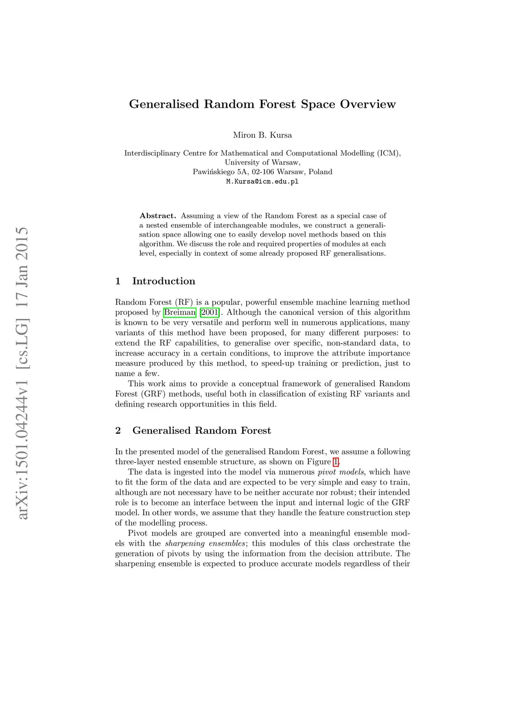 Assuming a view of the Random Forest as a special case of a nested ensemble of interchangeable modules, we construct a generalisation space allowing one to easily develop novel methods based on this algorithm. We discuss the role and required properties of modules at each level, especially in context of some already proposed RF generalisations.