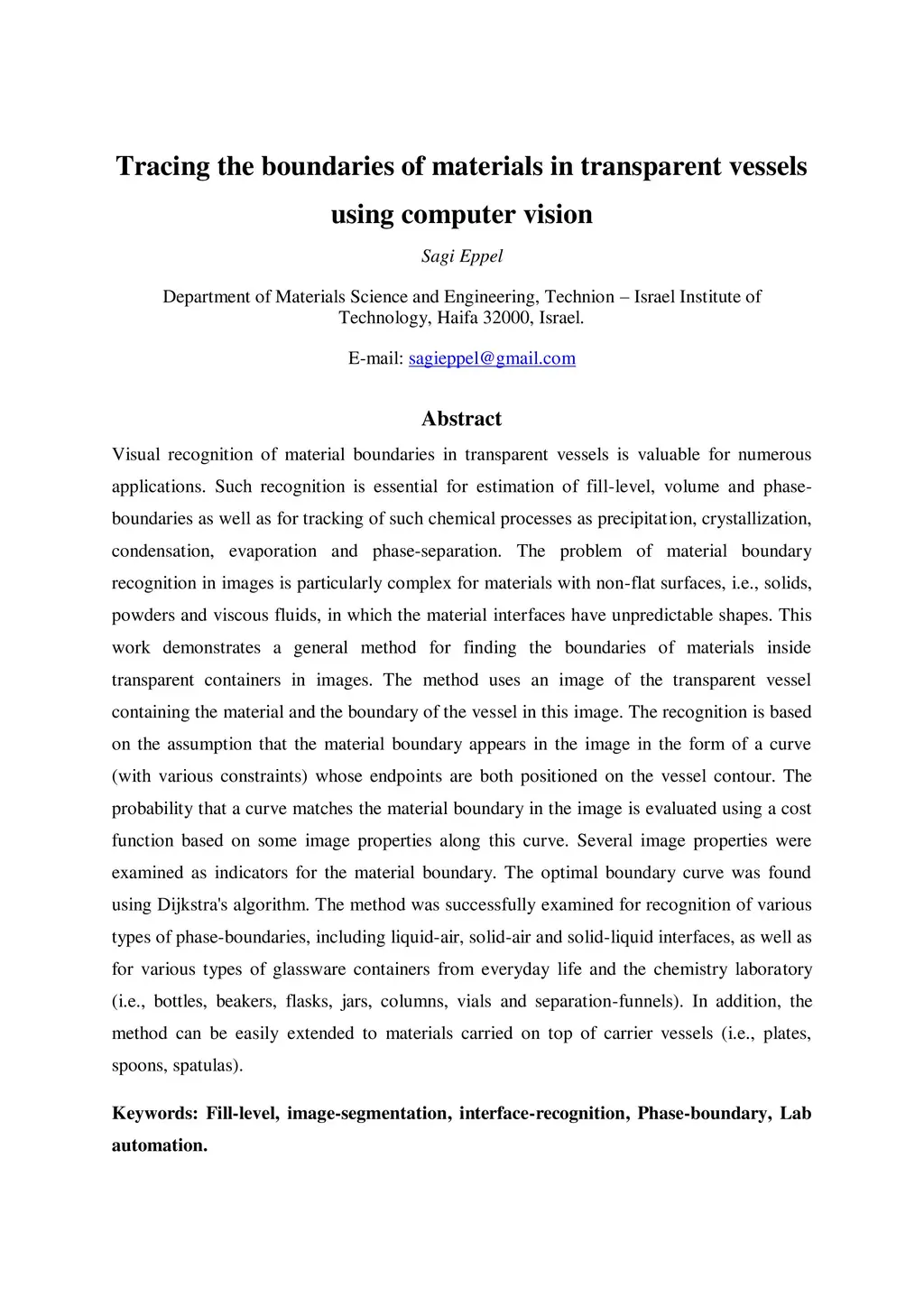 Tracing the boundaries of materials in transparent vessels using computer vision