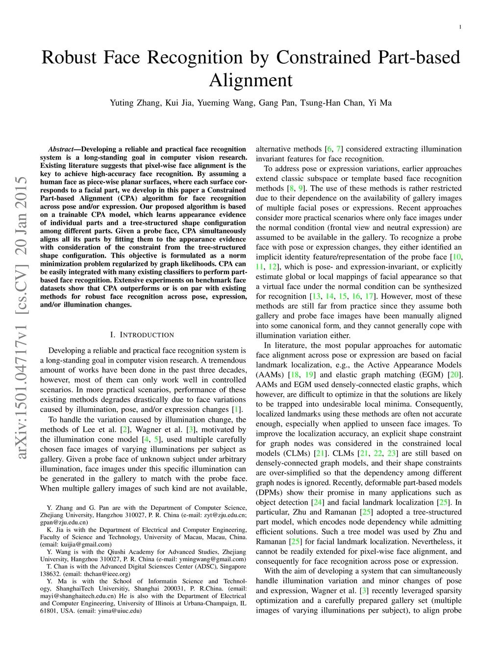 Robust Face Recognition by Constrained Part-based Alignment