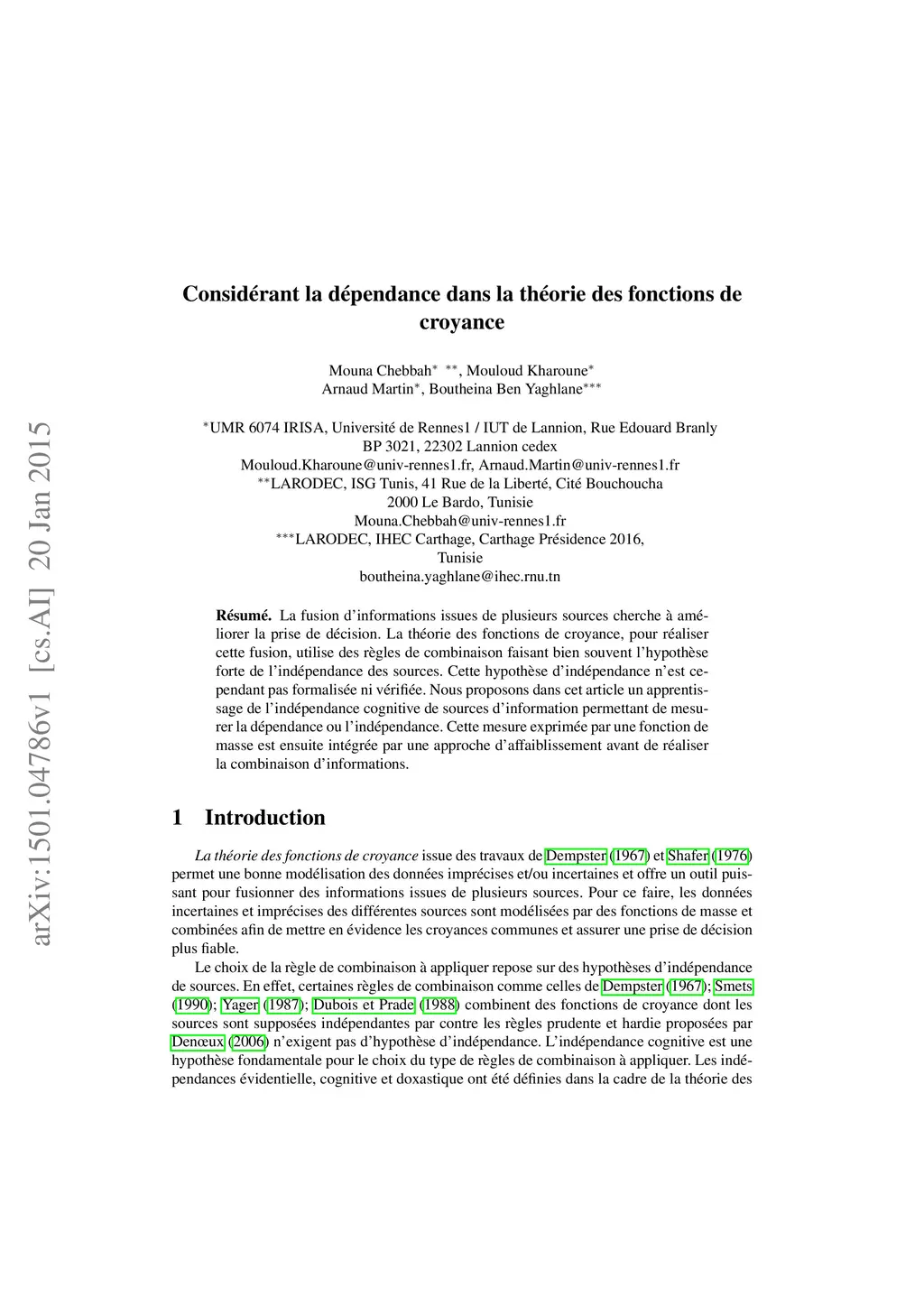 Consid{é}rant la d{é}pendance dans la th{é}orie des fonctions de