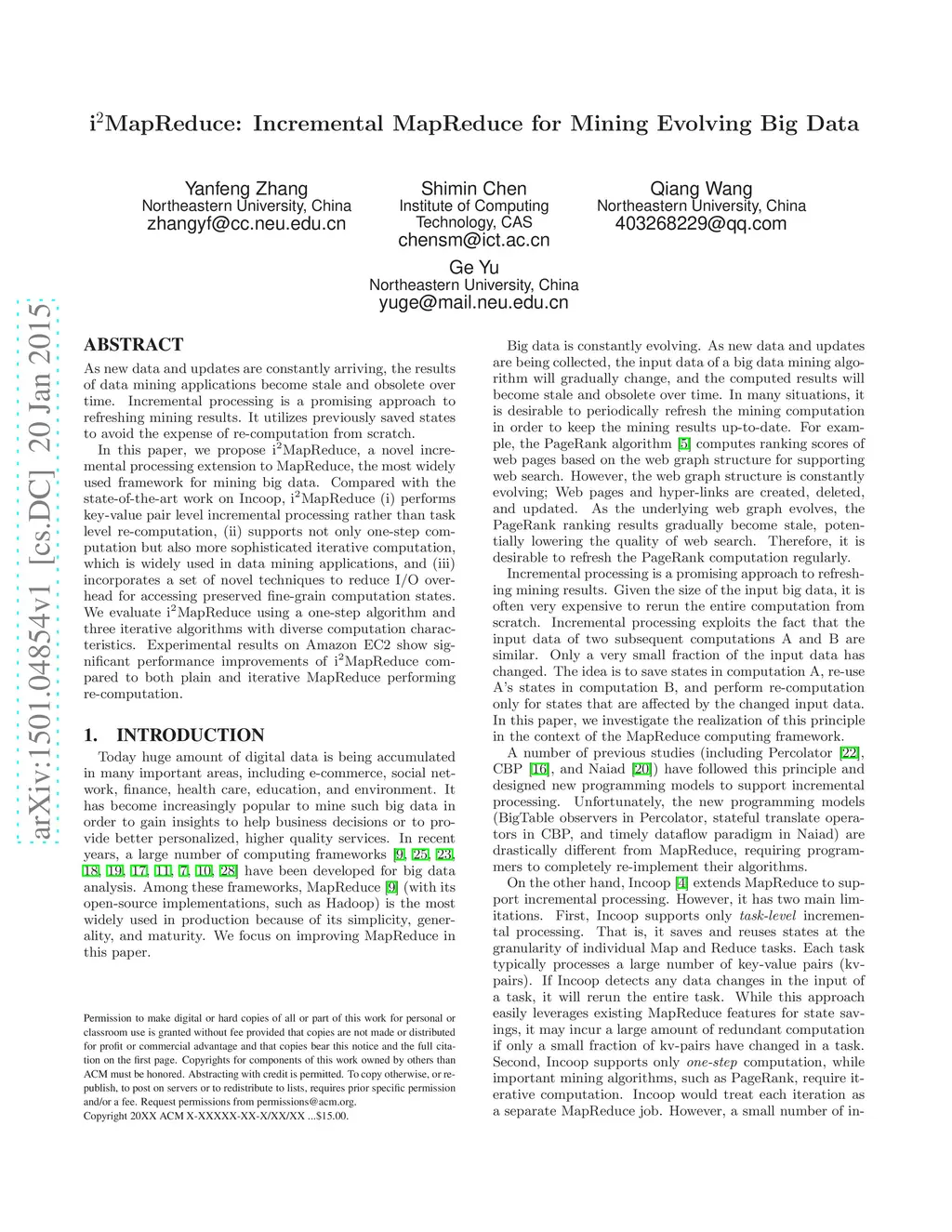 i2MapReduce: Incremental MapReduce for Mining Evolving Big Data